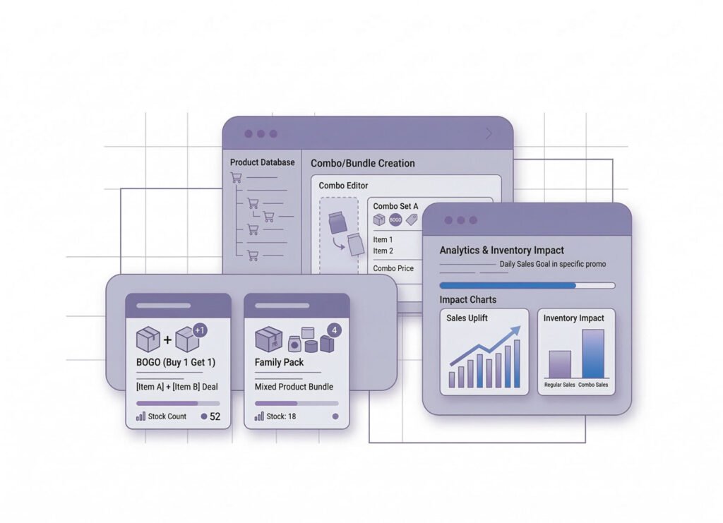 Create and manage complex product bundles and combo deals (e.g., “Buy 1 Get 1,” “Family Packs,” etc.) with ease. Tailored for supermarkets that frequently run mixed-product offers, this system boosts sales and customer value while tracking inventory impact in real-time.